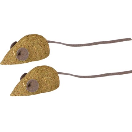 Leksaksmöss med kattmynta som uppmuntrar till lek. 2-pack.