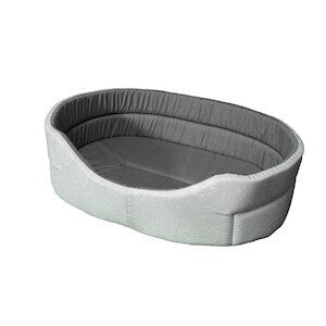 Hundbädden är tvättbar i 30 °C. Grå-Vitt mönster + mörkgrå insida.