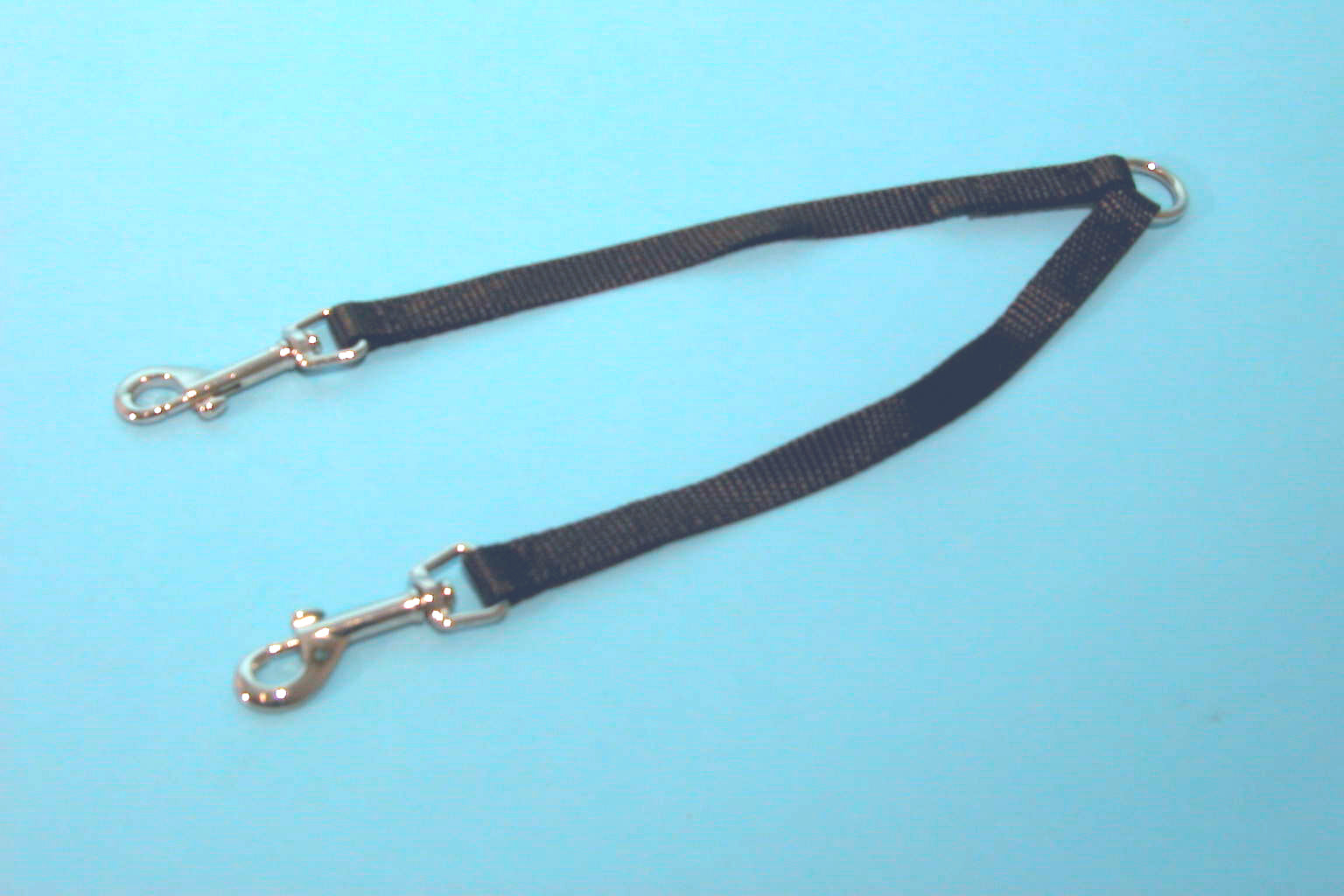 Parkoppel i Nylon svart Alac. Delad för att kunna ha två hundar i samma koppel.
